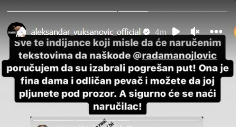 – Rada je fina dama i odličan pjevač i možete da joj pljunete pod prozor. A sigurno će se naći naručilac – napisao je Aca.